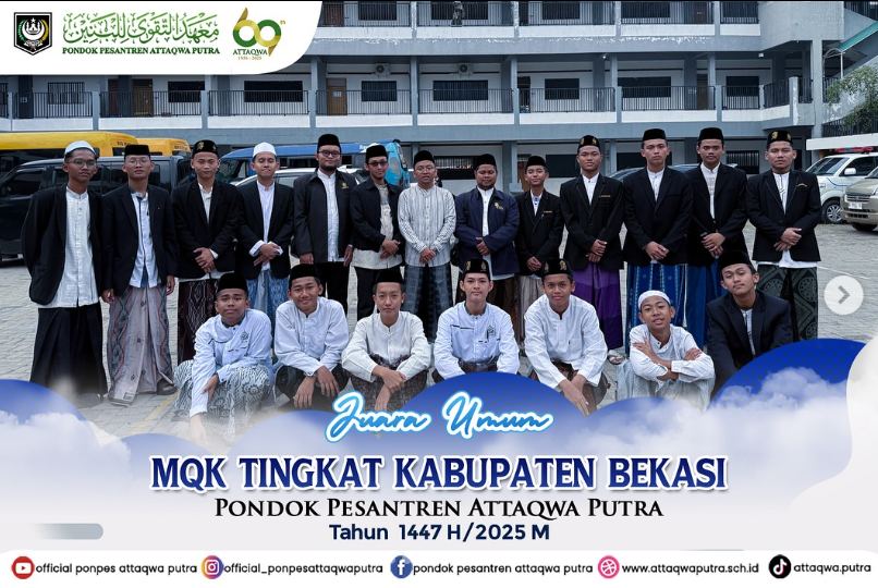 Bekasi – Pondok Pesantren Attaqwa Putra berhasil meraih predikat Juara Umum Musabaqah Qiraatil Kutub (MQK) Tingkat Kabupaten Bekasi Tahun 2025. Dalam kompetisi bergengsi yang diadakan di ponpes Sirajul Ummah – Karang Bahagia pada 18 September 2025 tersebut, santri Attaqwa Putra mendominasi kategori tingkat Wustho dengan meraih juara pertama di cabang Ushul Fiqh, Hadits, Akhlaq, Tauhid, dan Tafsir. Selain itu, di tingkat Ula, mereka juga menorehkan prestasi dengan meraih juara pertama pada cabang Tarikh serta juara kedua pada cabang Tauhid.